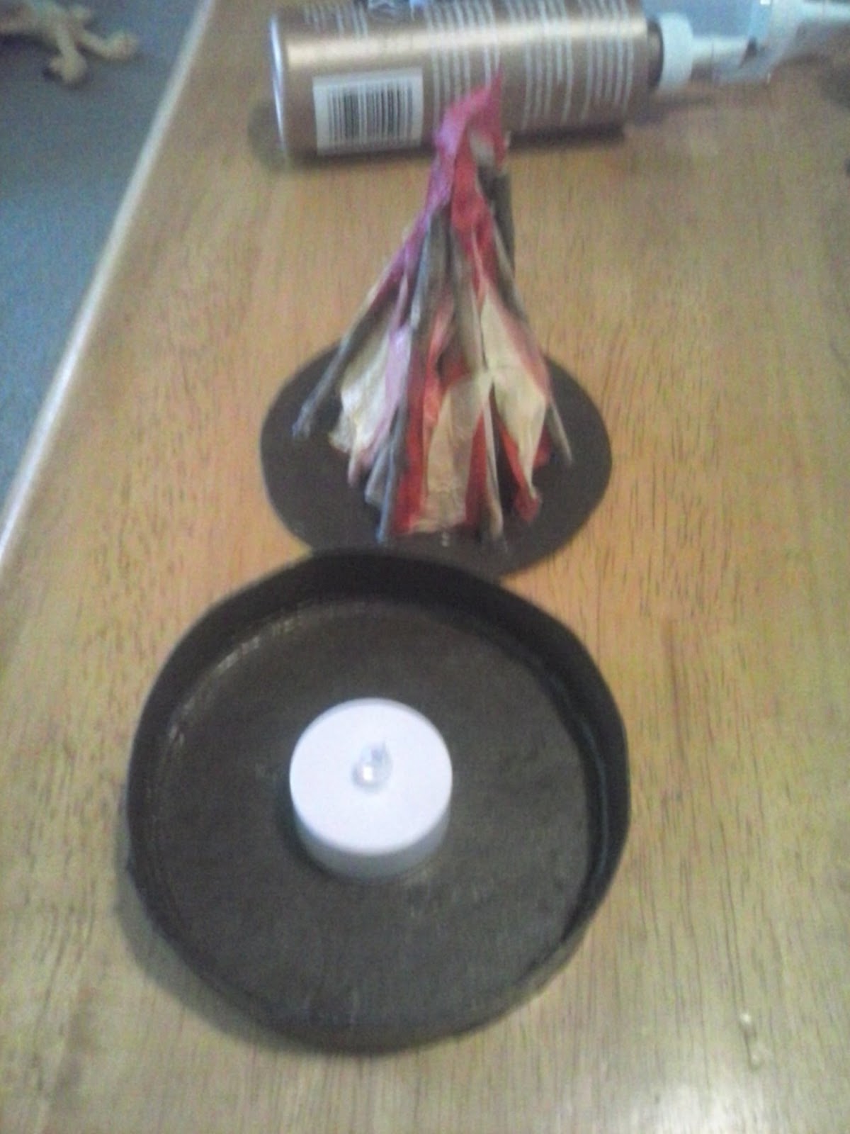 10. That's it! Add your tea light in the middle and you have a roaring camp fire! Grab your marshmallow roasting sticks and guitar for a fun night at the camp fire! If you have any questions leave them below and I will get to them as soon as I can!